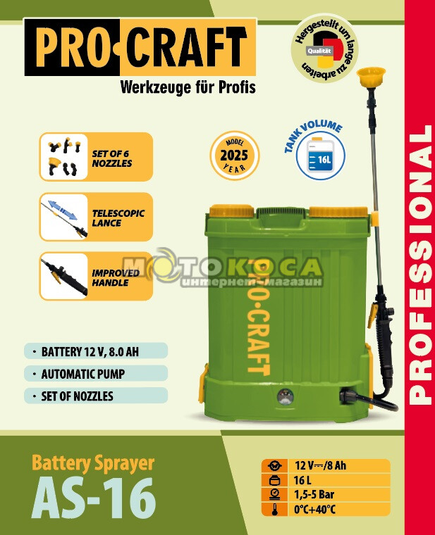 Опрыскиватель аккумуляторный ProCraft AS16 (2026) – это