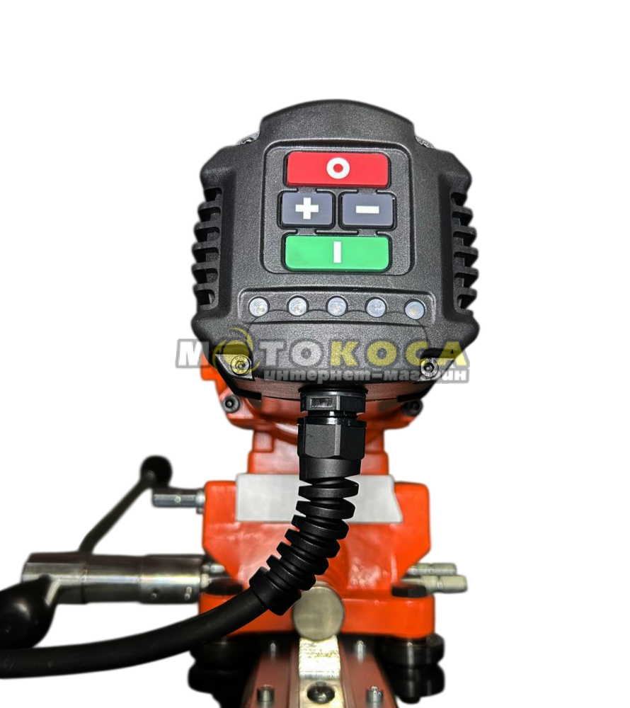 системе водяного охлаждения и позволяет проделывать отверстия диаметром до 300 мм. Алмазная коронка крепится непосредственно