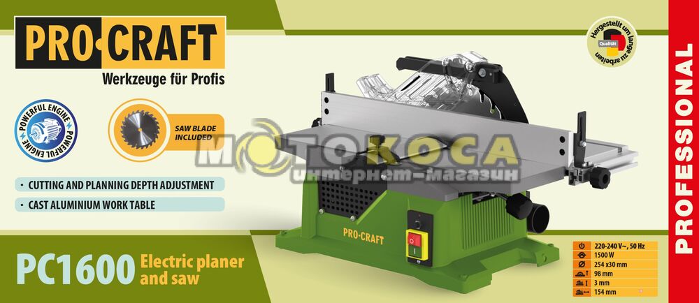 Теги: Стаціонарна циркулярна пила з фуганком ProCraft PC1600, PROCRAFT, Деревообробні верстати
